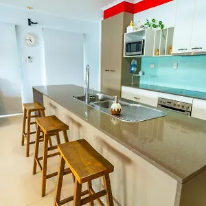 This villa includes an outdoor dining area with a microwave oven, an electric kettle, and a refrigerator.